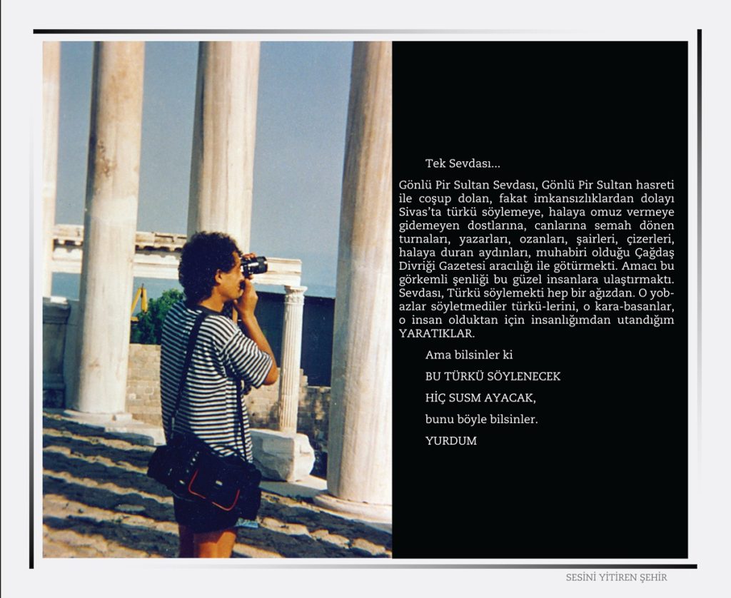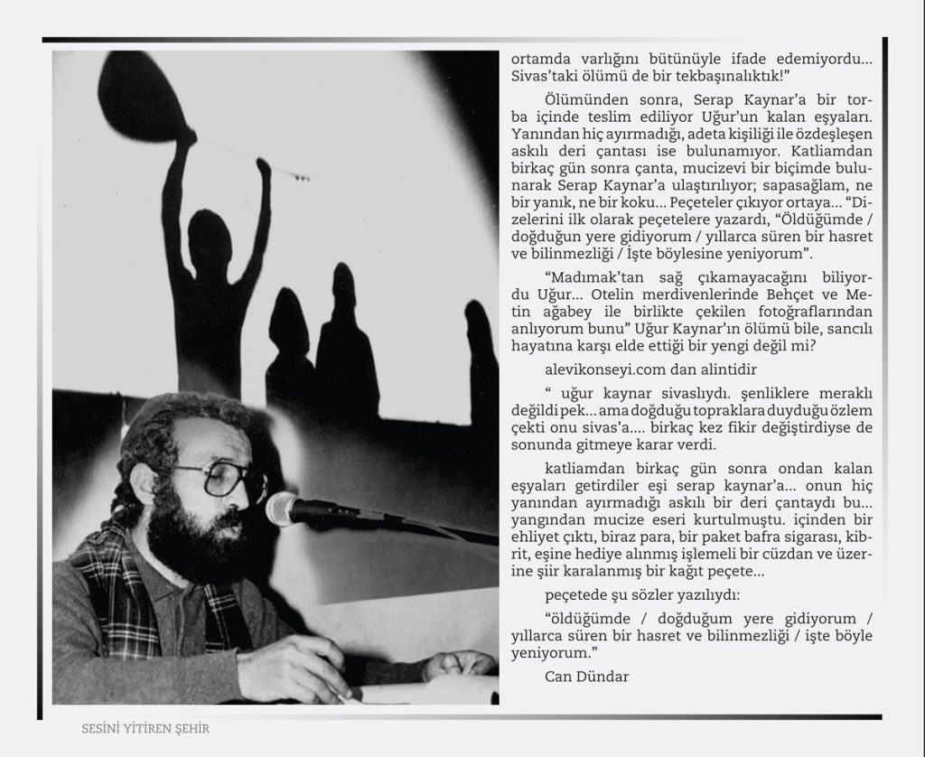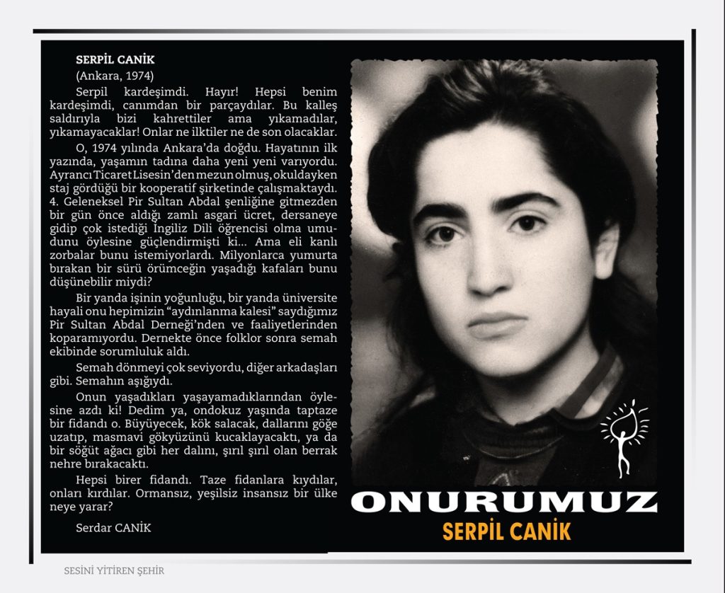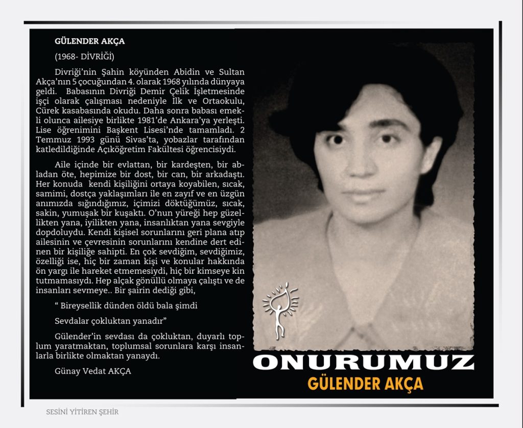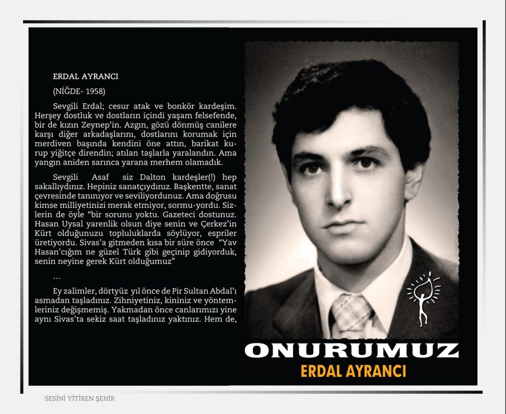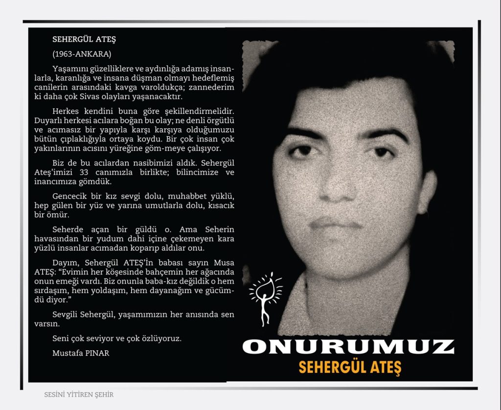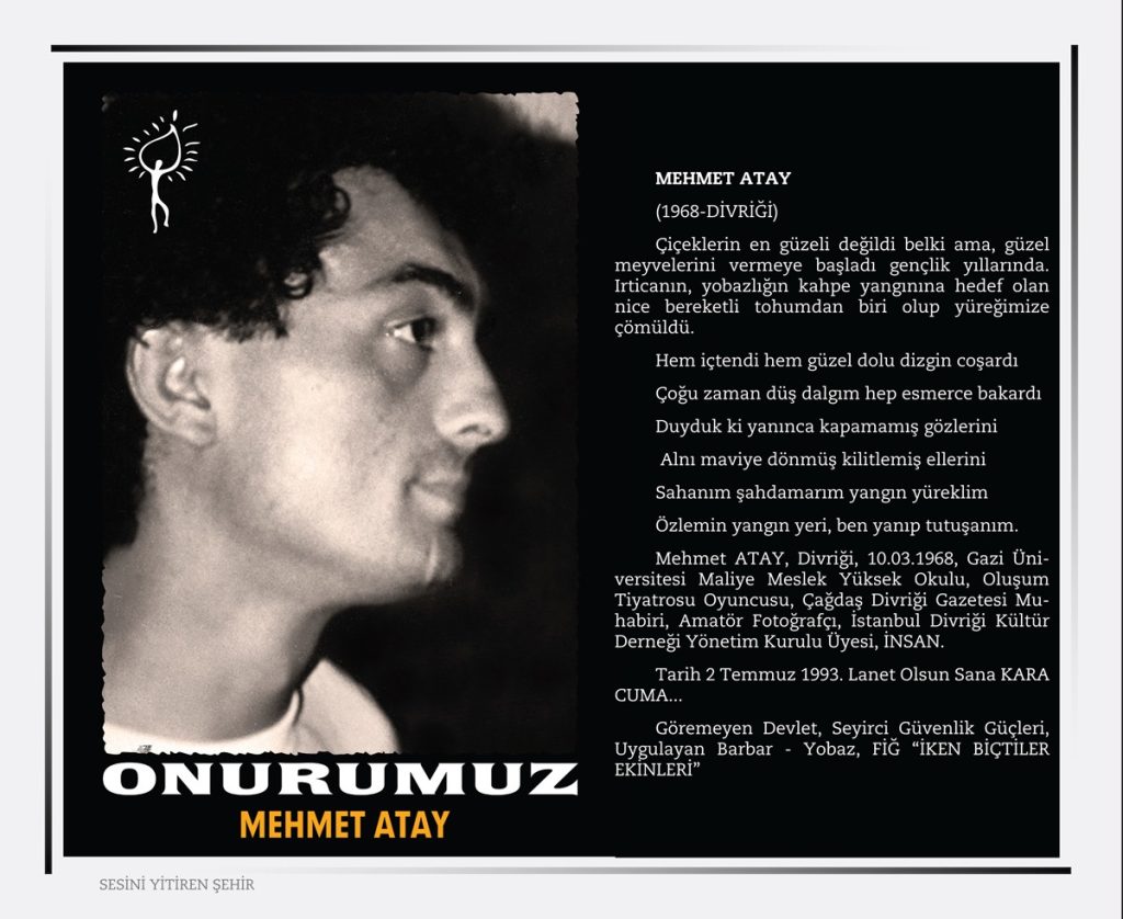 Sivas ‘’ Madımak’’ Katliamı 2 Temmuz 1993 tarihinde Türkiye’nin Sivas şehrinde büyük ozan Pir Sultan Abdalı anmak amacı ile ülkemizin seçkin yazar, ozan, ressam, şair, karikatürist ve semahcılar’dan oluşan aydınlar kaldıkları MADIMAK otelinde dinci, gerici, İslamcı faşistler tarafından ateşe verilerek yakıldılar.